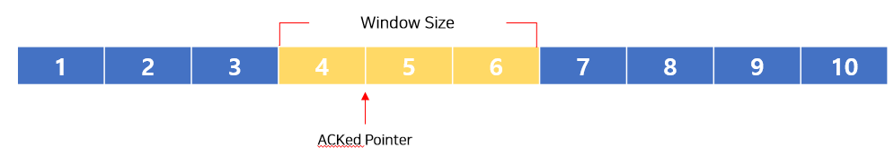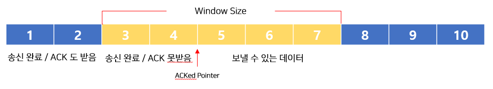 5,6,7 번은 송신할 수 있지만, 아직 송신하지 않은 데이터를 의미한다. (정확히는 해당 데이터를 갖고 있는 패킷의 SQ#)